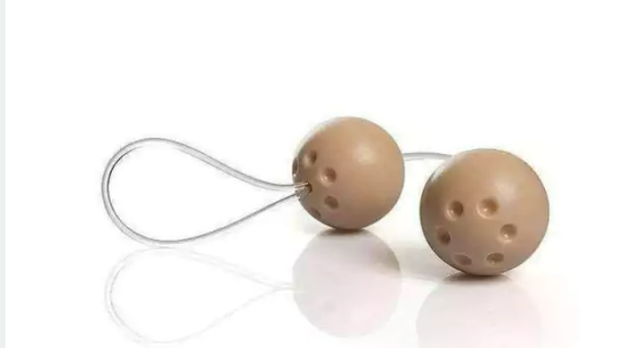 Conjunto com 2 bolas Ben-Wa para pompoar em material PS com pesinhos, cordão de silicone e alça de segurança.