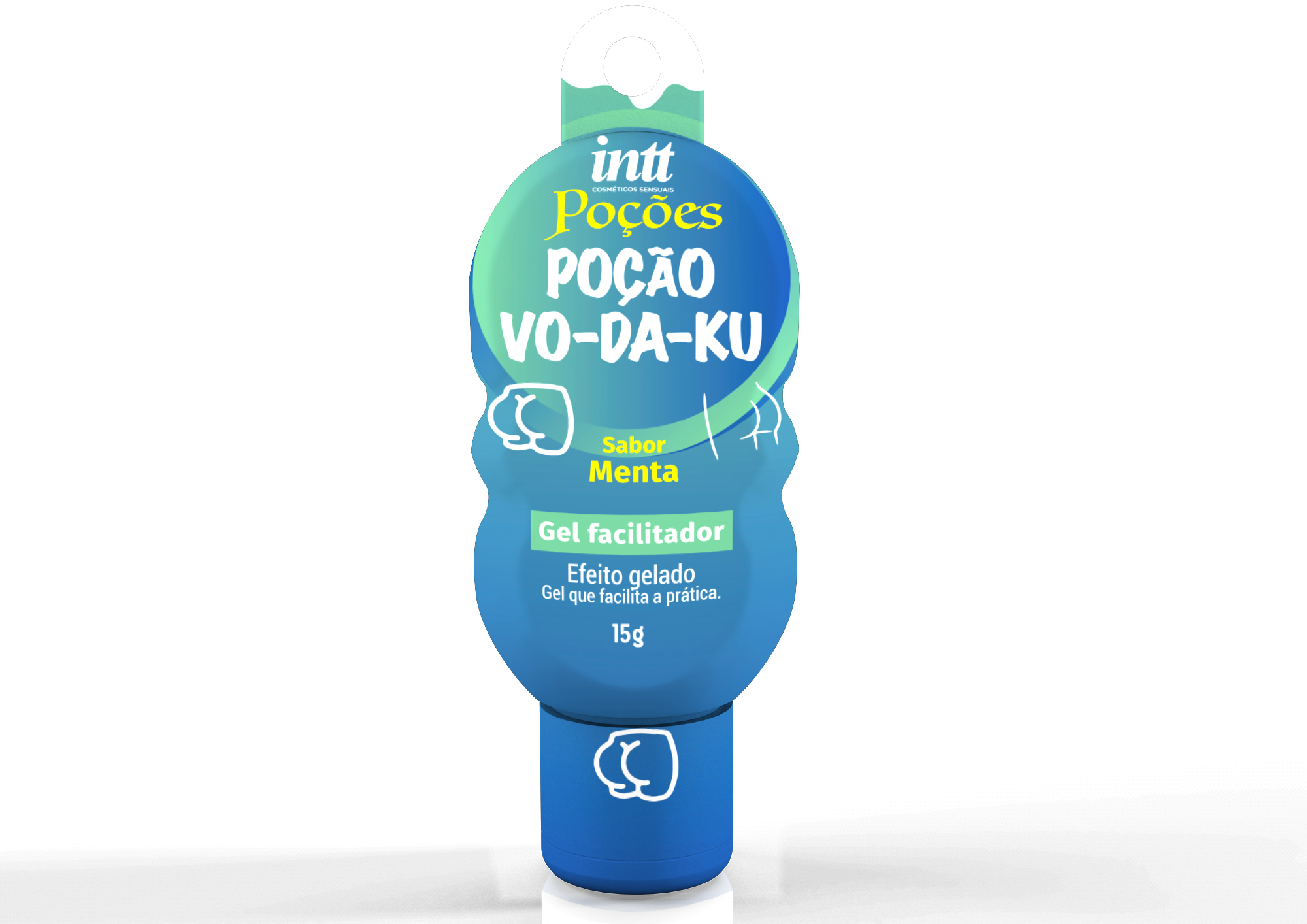 Vo-da-ku, um gel com efeito gelado e um delicioso aroma de menta, que proporciona uma sensação de relaxamento na região aplicada.